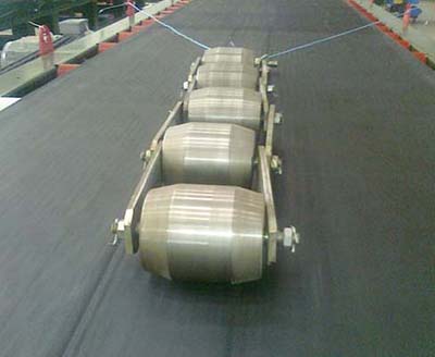 滾碼是由高精度機械加工、組裝而成,可隨皮帶同步運行,模擬物料輸送特點。通過工藝上的嚴(yán)格控制,保證整條鏈(一般為7.8m)每米規(guī)格符合國家標(biāo)準(zhǔn)規(guī)定。
