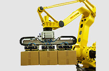 碼垛機器人將流水線上或是其他的方包裝好的產(chǎn)品用抓取器抓取,然后移動抓取器,將產(chǎn)品按照一定的方式在要求的位置碼好。抓取時,因為所用的抓取器不同,抓取原理不同。碼垛方式也有多種,有正反交錯式、縱橫交錯式、旋轉(zhuǎn)交錯式等。